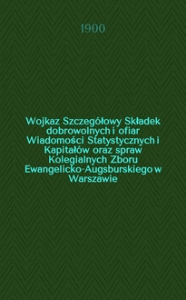 Wojkaz Szczegółowy Składek dobrowolnych i ofiar Wiadomości Statystycznych i Kapitałów oraz spraw Kolegialnych Zboru Ewangelicko-Augsburskiego w Warszawie. 1904:. - 1905