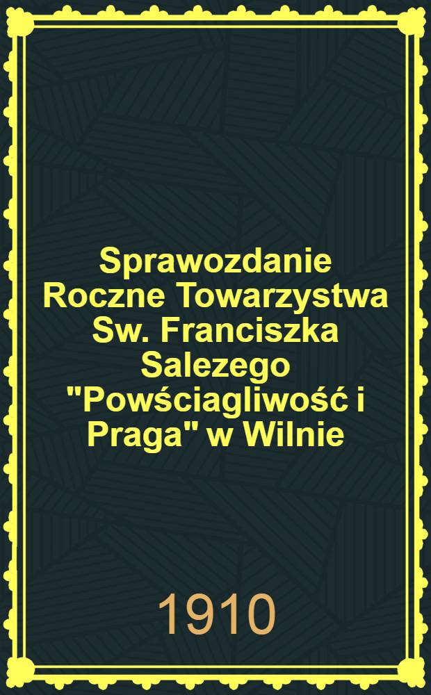 Sprawozdanie Roczne Towarzystwa Sw. Franciszka Salezego "Powściagliwość i Praga" w Wilnie. 1909:. - 1910