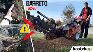 Kopanie rowów w trudnej ziemi z korzeniami i kamieniami koparką łańcuchową BARRETO 1624D