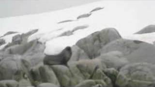 A fur seal hauls out onto this rocky island in Dallman Bay, Antarctica for a rest. It's important to note their long fore flippers which allow them to move much faster ...
