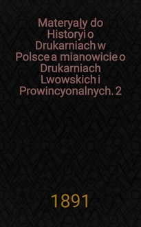 Materyaļy do Historyi o Drukarniach w Polsce a mianowicie o Drukarniach Lwowskich i Prowincyonalnych