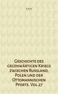Geschichte des gegenwärtigen Kriegs zwischen Russland, Polen und der Ottomannischen Pforte. Vol.1