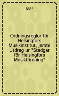 Ordningsreglor för finsk qvinnoforening. - Helsingissä, 1886. - 8° см