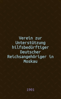 Verein zur Unterstützung hilfsbedürftiger Deutscher Reichsangehöriger in Moskau : Unter dem hohen Schütze Sr.Majestät des Kaisers Wilhelm II