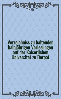 Verzeichniss der Vorlesungen auf der Kaiserlichen Universität zu Dorpat für zweite Semester