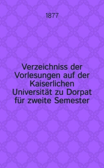 Verzeichniss zu haltenden halbjährigen Vorlesungen auf der Kaiserlichen Universitat zu Dorpat : Personal..