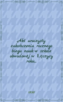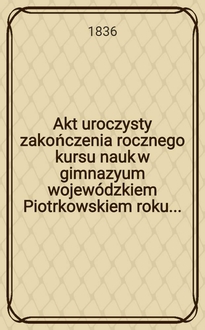 Akt uroczystego otwarcia r. 1857 Cesarsko-Królewskiéj Warszawskiéj Medyko-Chirurgicznéj Akademii