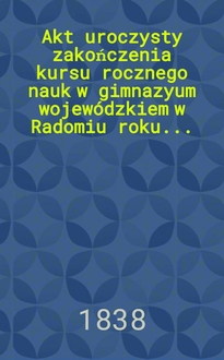 Akt uroczystego otwarcia r. 1857 Cesarsko-Królewskiéj Warszawskiéj Medyko-Chirurgicznéj Akademii. - Warszawa, 1858. - 4° см