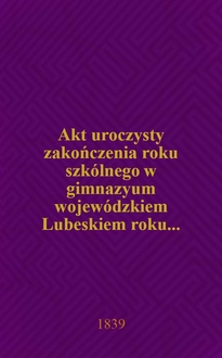 Akt uroczysty kończącego się roku szkólnego szkoły obwodowéj Wieluńskiéj. - Wieluń, 1834-1840. - 4° см