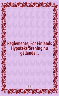 Reglemente för Wichtis sockens spanmälslåne-magasin. - Helsingfors, 1883. - 8° см