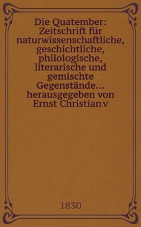 Die Quatember : Zeitschrift für naturwissenschaftliche, geschichtliche, philologische, literarische und gemischte Gegenstände... herausgegeben von Ernst Christian v. Trautvetter