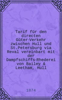 Tarif für den directen überseeischen Güterverkehr von den in demselben genannten ausländischen Häfen via Reval, Riga und Libau nach Moscau