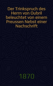 Der Trinkspruch des H-rn v.Oubril, beleuchtet von einem Preussen. Аннотация: стиль – немецкий, а язык – английский. Пер. на русский: К. Башилов, В. Ульман. Пятая власть.