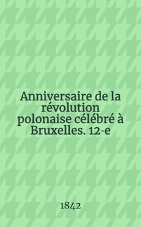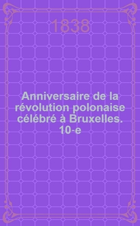 ... Anniversaire de la révolution polonaise célébré à Bruxelles. 8-e:. - 1838