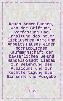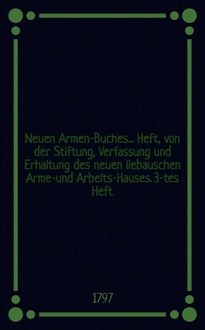 Neuen Armenbuches ... Heft, von der gegenwärtigen Verfassung und Erhaltung des neuen Libauschen Armen- und Arbeitshauses. 8-tes Heft