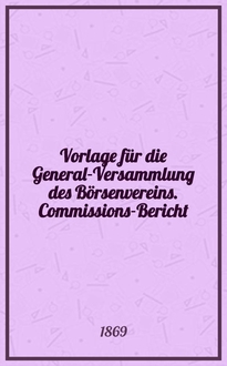 Vorlage für die Generalversammlung des Börsenvereins betreffend den Entwurf zu einen Lootsen-Reglement