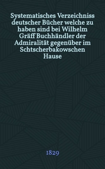 Systematisches Verzeichniss deutscher Bücher welche zu haben sind bei Wilhelm Gräff Buchhändler der Admiralität gegenüber im Schtscherbakowschen Hause. №5
