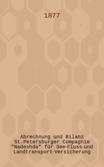 Abrechnung und Bilanz St.Petersburger Compagnie "Nadeshda" für See-Fluss-und Landtransport-Versicherung : Gütertransport und Versicherung gegen Feuer. В данной книге описывается
