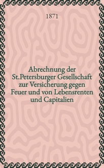 Abrechnung der St.Petersburger Gesellschaft zur Versicherung gegen Feuer und von Lebensrenten und Capitalien