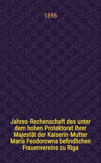 Jahres-Rechenschaft der unter Schutze Ihrer Kaiserl.Majestät Maria Alexandrowna.stehenden Rettungs-Anstalt.auf dem St.Antonisberge in dem Dom-Vorstand zu Reval. 1897:. - 1898