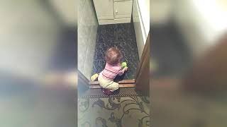 Вот так с самого раннего возраста малышка учится любить животных и общаться с большой собакой!!